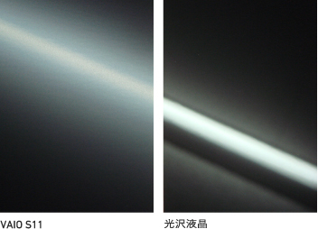 液晶ディスプレイの価値は解像度だけではありません。まぶしい太陽光の下でもはっきり見える明るさ、会議中などに画面をとり囲むように斜め方向から見ても色味が変わらない視野角の広さ、商品写真などを意図通りに表示できる色域の広さ……これらすべてを同時に実現するのは至難の業とされています。しかし、VAIO S11はここにもこだわり、独自技術を盛りこんだ快なるディスプレイを搭載。文字をくっきり、なめらかに表示でき、場所を選ばずどこでもしっかり見え、色彩も正しく再現できるIPS液晶パネルを採用しました。もちろん画面への映り込みなど、見やすさを阻害する要因も極力排除。画面へのこだわりはホビー用途だけでなく、長時間画面を凝視するビジネス用途においても重要と考えます。