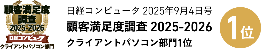株式会社日経BPが2025年8月28日に発表した「日経コンピュータ 顧客満足度調査 2025-2026」の「クライアントパソコン部門」において1位を獲得しました。