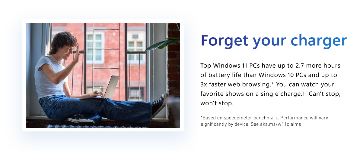 1. Battery life varies significantly by device and with settings, usage and other factors. See aka.ms/w11claims.